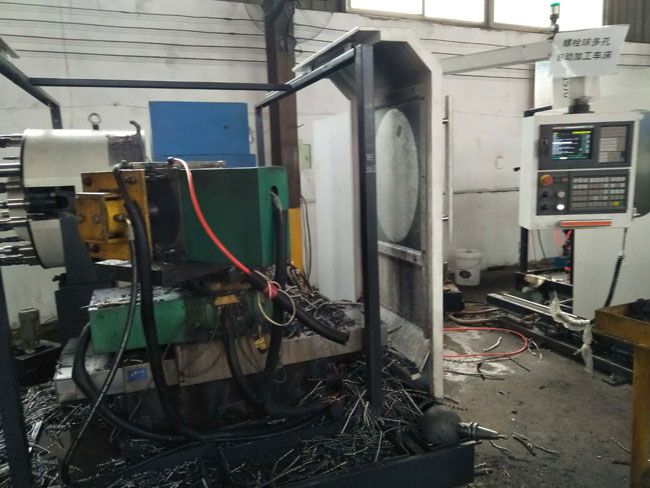 山東省濟寧市恒興金屬結構有限公司自主研發(fā)的螺栓球多孔加工數控車(chē)床
